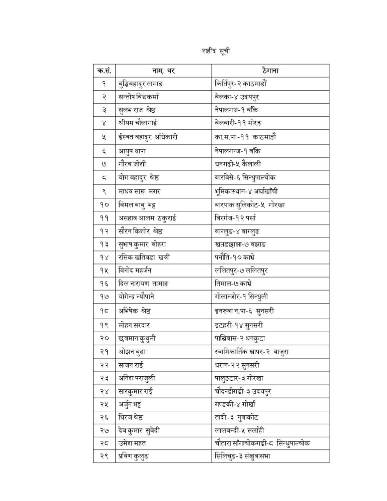 Government spokesperson and Minister for Communications Jagdish Kharel confirmed, based on studies conducted by the Ministry of Home Affairs, security agencies, and district administrations, 45 individuals have been declared martyrs. Further cases are under review.
